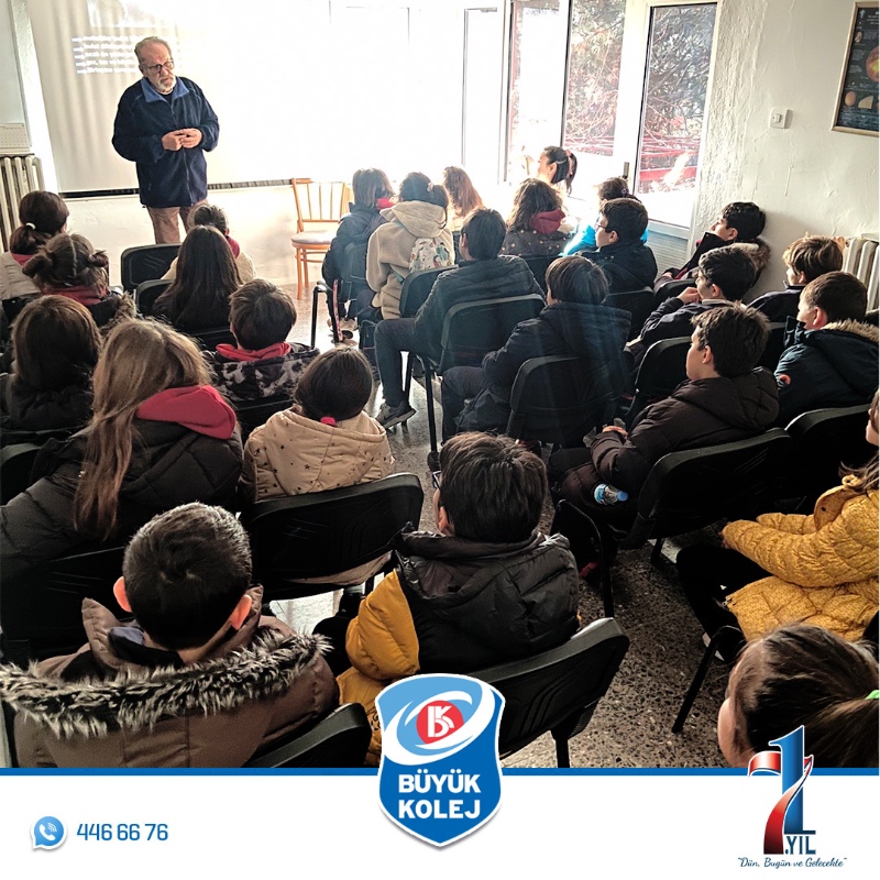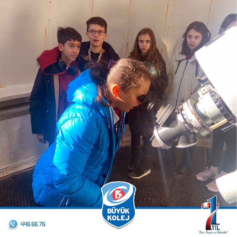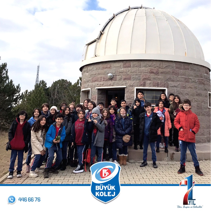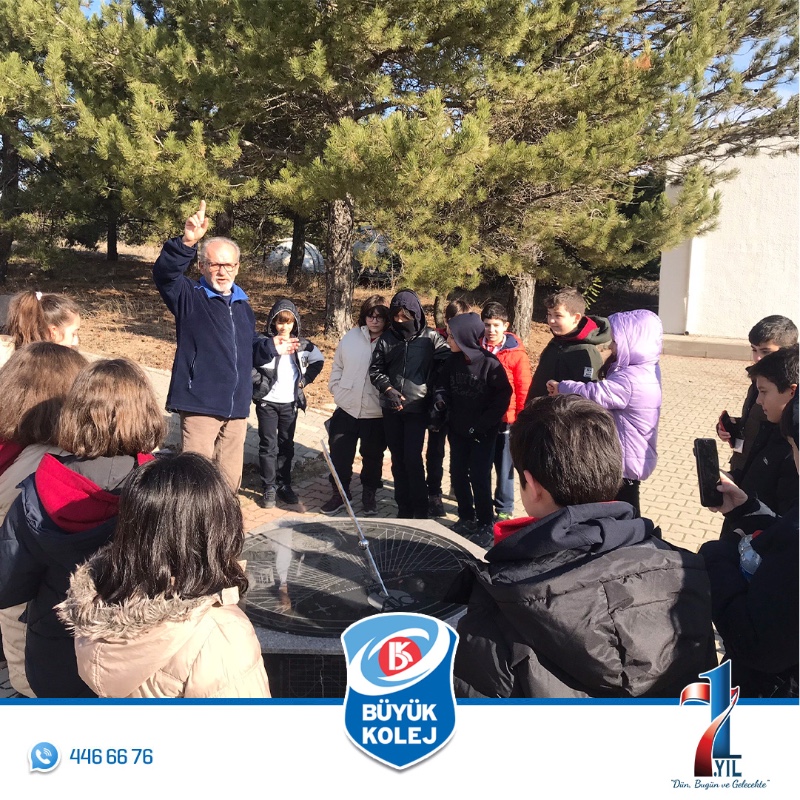 5. sınıf öğrencilerimizle Fen Bilimleri dersinde işlediğimiz “Güneş, Dünya, Ay” ünitesinde öğrendiklerimizi pekiştirmek amacıyla “Ankara Üniversitesi Kreiken Rasathanesi"ne gezi düzenledik. Gezide öğrencilerimiz öncelikle "Güneş, Dünya ve Ay" konulu bir sunuma katıldılar. Ardından teleskopla Güneş gözlemi yapıldı. Rehberimiz son olarak Güneş saatini tanıttı ve gezimizi tamamladık.